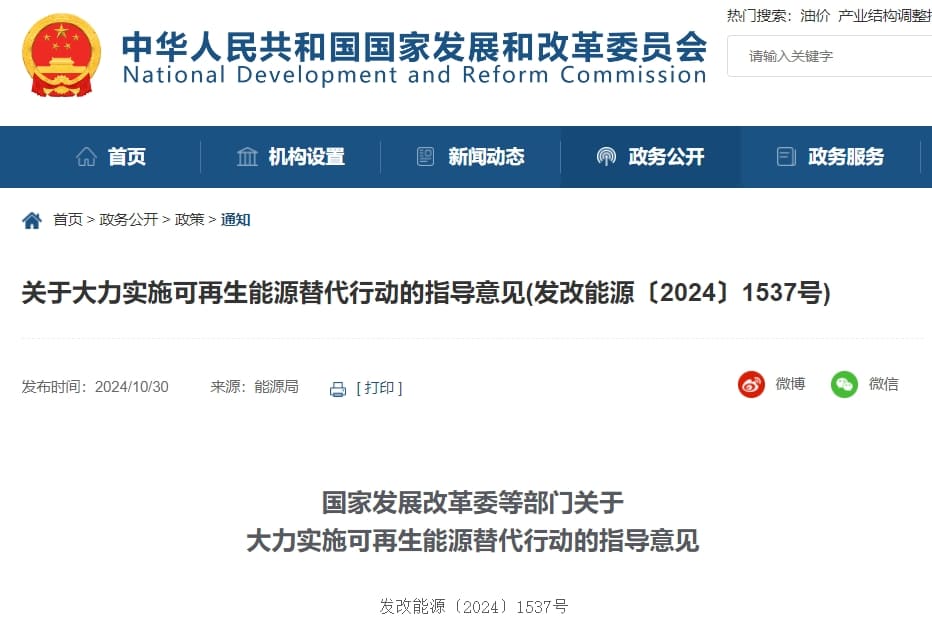 10月30日,國(guó)家發(fā)展改革委、國(guó)家能源局等六部門(mén)聯(lián)合制定了《大力實(shí)施可再生能源替代行動(dòng)的指導(dǎo)意見(jiàn)》(以下簡(jiǎn)稱:指導(dǎo)意見(jiàn))。