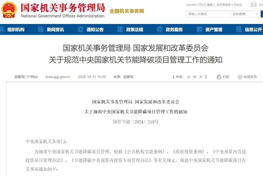 10月31日,國(guó)管局及發(fā)改委兩部門(mén)聯(lián)合發(fā)布《關(guān)于規(guī)范中央國(guó)家機(jī)關(guān)節(jié)能降碳項(xiàng)目管理工作的通知》(以下簡(jiǎn)稱:通知)