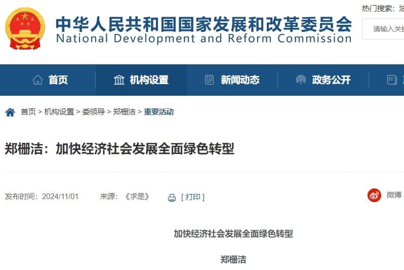 近日,《求是》雜志發(fā)表國(guó)家發(fā)改委黨組書(shū)記、主任鄭柵潔署名的文章《加快經(jīng)濟(jì)社會(huì)發(fā)展全面綠色轉(zhuǎn)型》。